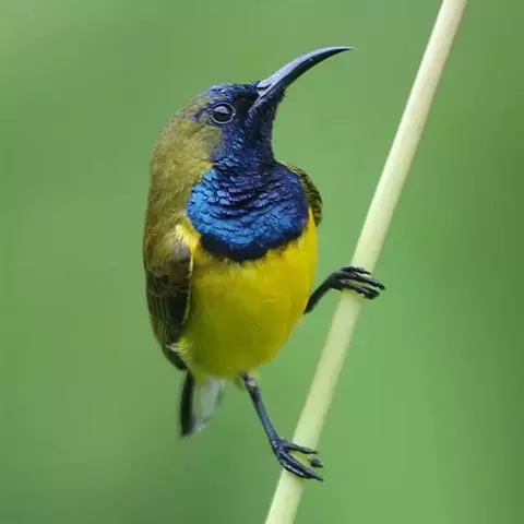 黄腰太阳鸟共有16个亚种,小型鸟类,体长10-15厘米。嘴细长而向下弯曲,雄鸟额和头顶前部金属绿色,…