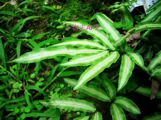 与剑叶凤尾蕨(原变种)区别在于:该种羽片中央沿主脉两侧各有1条纵行的灰白色带。