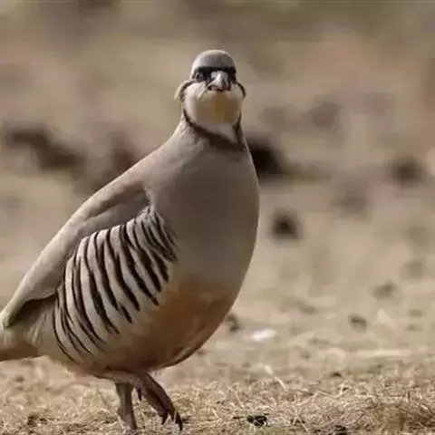 体大的灰褐色鹑类。胸灰色具黑色细纹。与相似种类四川雉鹑不同处在于栗色喉块外缘近白。有猩红色眼周裸皮。…