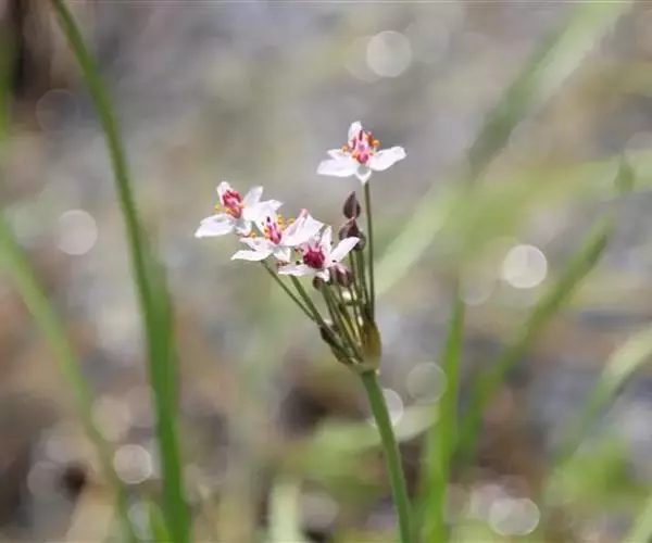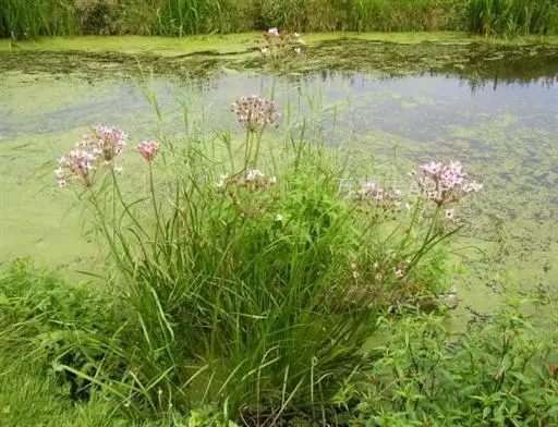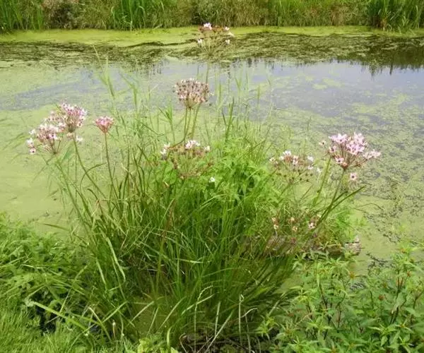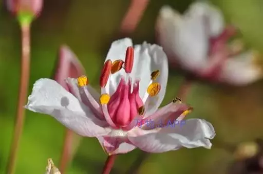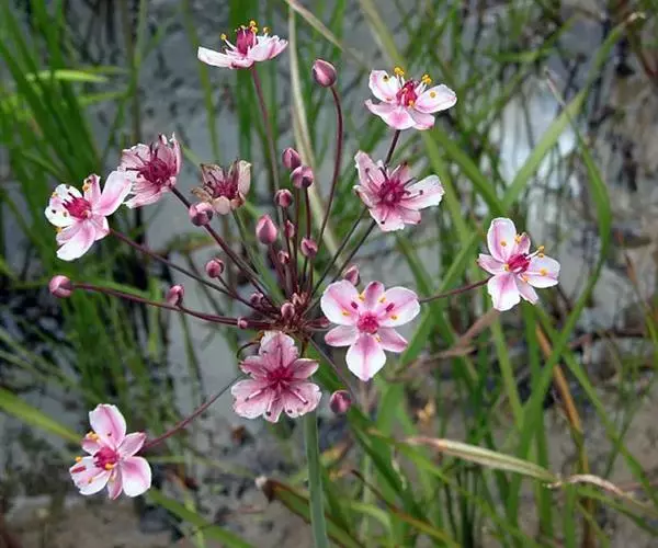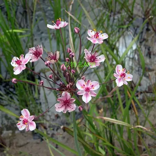 花蔺(Butomus umbellatus)在原产地属多年生挺水草本植物。具有质须根,老根黄褐色,新根白色,最长的根15-20厘米。叶基部丛生,叶片挺水生长,叶色亮绿,椭圆形,长约13厘米,全缘,先端圆形或微凹,基部钝圆,叶面光滑,弧形脉10-12条;叶柄三棱形,长15-20厘米,内具海绵组织,基部鞘状。