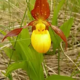 丽江杓兰(学名:Cypripedium lichiangense S. C. Chen & Cribb)是隶属于兰科、杓兰属的国家一级保护植物 。植株高约10厘米,具粗壮、较短的根状茎。茎直立,长3-7厘米,包藏于2枚筒状鞘之内,顶端具2枚叶。叶近对生,铺地;叶片卵形、倒卵形至近圆形,上面暗绿色并具紫黑色斑点,有时还具紫色边缘。花序顶生,具1花;花甚美丽,较大;萼片暗黄色而有浓密的红肝色斑点或完全红肝色,花瓣与唇瓣暗黄色而有略疏的红肝色斑点;花瓣斜长圆形,内弯而围抱唇瓣,长4-6.5厘米,宽1.4-2.1厘米,先端急尖,背面上侧有短柔毛,边缘有缘毛;唇瓣深囊状,近椭圆形,腹背压扁。花期5-7月。