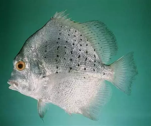 斑点鸡笼鲳,Drepane punctata (Linnaeus, 1758),帘鲷科(鸡笼鲳科)鸡笼鲳属的一种鱼类。体侧扁而高,呈菱形、背缘在背鳍起点处和腹缘在臀鳍起点处最高、口小,眼大。体被栉鳞,并伸展至背鳍与臀鳍上、体呈浅灰褐色,体侧有4~10条成横带状排列的浅黑色斑点、背鳍连续,前半部有9~10鳍棘,第4棘最长,胸鳍大,延长至尾柄;臀鳍有3鳍棘;尾鳍弧形、各鳍均呈淡豆绿色。
