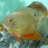 金菠萝鱼,Cichlasoma severum,慈鲷科丽体鱼属。成鱼体长20~25cm,厚侧扁形,…