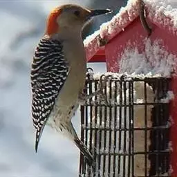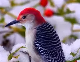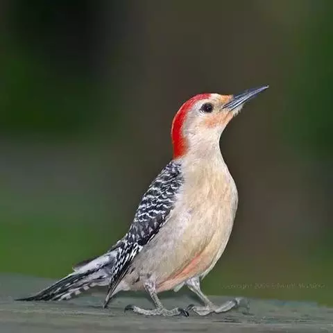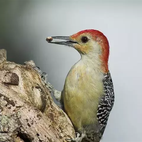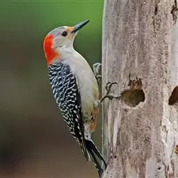 红腹啄木鸟成年雄鸟头项有红帽,翅膀和上体是黑白相间的斑纹状羽毛,腹部有一片红羽毛。头亦大,但颈较长,…