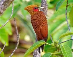 栗啄木鸟:是一种红褐色啄木鸟,体长21厘米。雄性成鸟整个头棕色,…