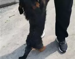 脚:椭圆形,厚,紧凑,前脚要比后脚大。后半部大,骨量重,肌肉强健。从后面看跗骨平行。缺陷:牛一样的跗骨。脚为椭圆形,有紧闭的弓起的脚趾。脚垫硬。指甲是黑色。