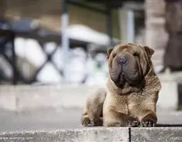 脑袋:适当宽些并略呈球形。前额有皱纹,后脑勺明显。止部有一个明显的凹陷,但是不会明显到呈现一个圆脑袋品种的程度。缺陷:圆头,苹果型头。口部与脑袋的比例为1比1。口部稍短一点是可以的。口部的上线是直的。缺陷:突起或凹入的口部。下颚强壮。牙齿为完整的强壮白色的牙齿,以剪状或水平咬合闭在一起。鼻子大,根据被毛的颜色,呈黑色或褐色。粉红色鼻子或部分缺少颜色的鼻子应当扣分。