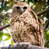 雌鸟前额为污白色,微缀纤细的黑色羽干纹;眼上有一条白色眉纹;头顶、头侧、后颈、颈侧、肩、背以及两翅覆羽棕黄色或淡栗色,其中头顶至后颈具黑褐色羽干纹;背和肩具黑褐色横斑,腰和尾上覆羽淡蓝色,具细而不甚明显的灰褐色横斑,尾淡栗色,具9-10条窄的黑色横斑和宽的黑色次端斑及白色端斑;翅上初级覆羽和小翼羽黑褐色、缀棕色斑点,其余翅上覆羽与背同色,为棕黄色或淡栗色,初级飞羽黑褐色,内翈具白色横斑,外翈具淡褐色端缘;次级飞羽黑褐色,具棕色斑点和横斑。颏、喉、颊白色,其余下体肉桂皮黄色或淡棕黄色,胸具黑色纵纹,腹和两胁具黑色点状斑或矢状斑,覆腿羽淡棕白色,具暗褐色纤细羽干纹,肛周和尾下覆羽淡黄白色,翅下覆羽和腋羽亦为淡黄白色,具黄褐色横斑或斑点。