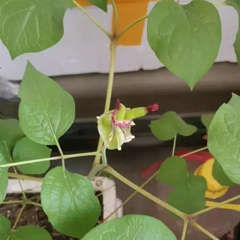 豆绿属于落叶灌木。茎高达2米;分枝短而粗。叶通常为二回三出复叶,偶尔近枝顶的叶为3小叶;顶生小叶宽卵形,中型长叶,总叶柄长约12厘米,平伸;小叶阔卵形,长4.5-6.5厘米,宽2.5-4厘米,缺刻较多,端短尖,下垂,叶面绿色稍有紫晕,叶背面密生绒毛。