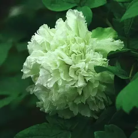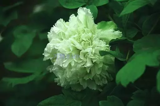 在牡丹品种中,豆绿是唯一纯正的绿色珍品,花为绣球型,因色如青豆而得名。此花是晚开品种,初开时呈青绿色,盛开时颜色渐淡,阳光下花色变白,清爽雅致,风韵独特,有一种另类脱俗的美。