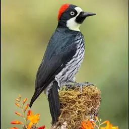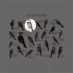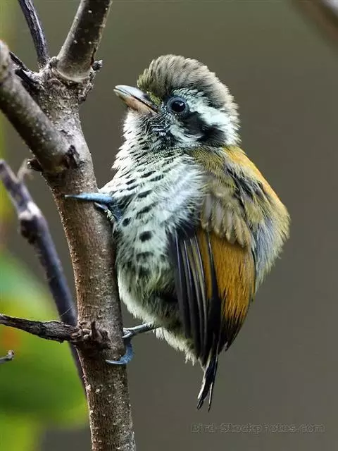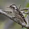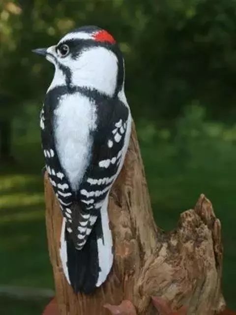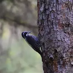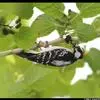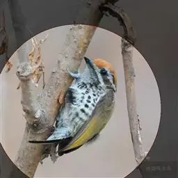 绒啄木鸟,北美洲最小的啄木鸟,白腹黑背和黑项,黑翼上有白色斑点。头部有黑白相间的条纹,尾巴短小,雄…