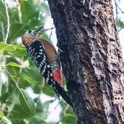 棕腹啄木鸟为啄木鸟科,啄木鸟属是中等体型的鸟类,体长约20厘米。头顶部具红色斑带。脚强健,有趾4个,…