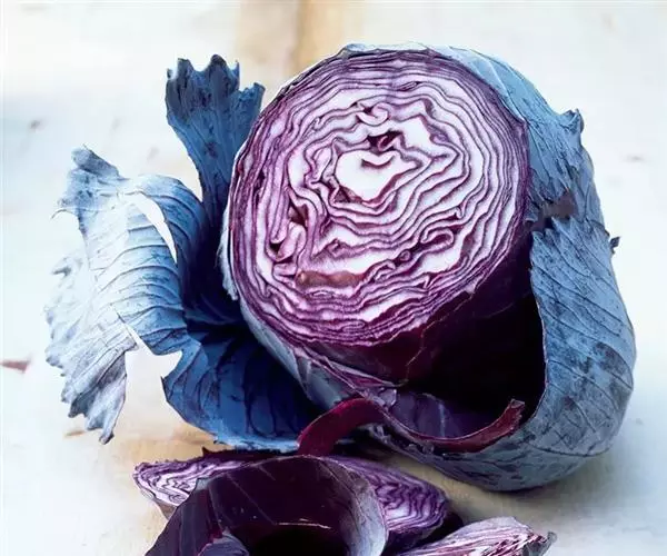 结球甘蓝中的一个类型,由于它的外叶和叶球都呈紫红色,故名紫甘蓝。紫甘蓝叶片紫红,叶面有蜡粉,叶球近圆形。它营养丰富,尤其含有丰富的维生素C、V和较多的维生素E和B族。在炒煮时,颜色成为黑紫色,十分美观;在欧洲地区主要作为色拉菜或西餐配色用,可用于生食、汤食、炒食。整棵购买时,可以将心挖除,用沾湿的报纸塞入其中,再用保鲜膜包起来。