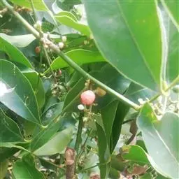 常绿灌木或小乔木。叶椭圆形,两端尖。果扁圆形,朱红色;味甜,可食。产自中国东南部,广东地区大量盆栽。