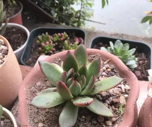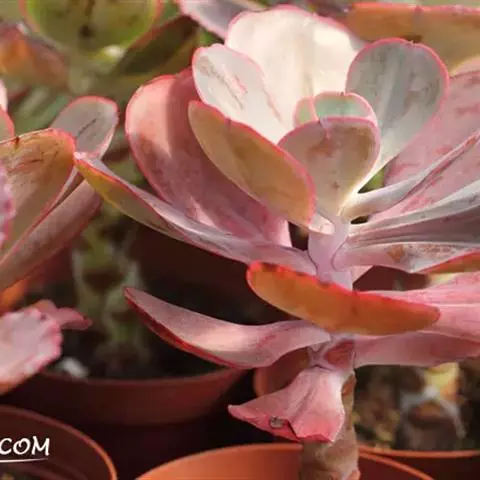 圣诞冬云整体来说养护不难,夏季不休眠,但生长缓慢,可少量给水,适当遮阴,如叶片干瘪柔软,就是缺水严重的征兆了,如果种植环境过于闷湿,圣诞冬云的下部叶片有些会黄化化水,出现这种情况,应注意通风控水。 夏季的圣诞冬云叶片颜色会显得较绿,仅叶尖和叶缘有红边。非夏季的圣诞冬云生长速度较快,浇水可干透浇透,尽量给予充足光照,圣诞冬云较抗寒,据说可适应零下3℃左右的温度,配合秋冬季节的温差,圣诞冬云叶片颜色会变得较浅,有点黄绿透明感,叶缘的红晕会渲染开,颇为娇艳。