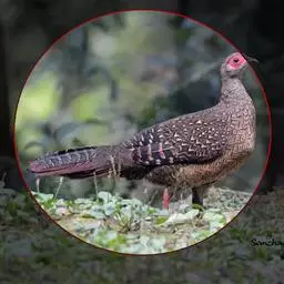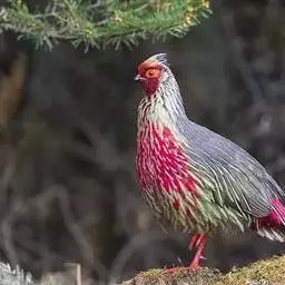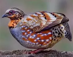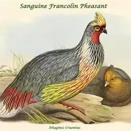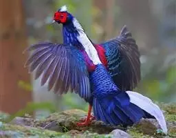 血雉雉科血雉属鸟类,别名血鸡、松花鸡,血雉的雄鸟大覆羽、尾下覆羽、尾上覆羽、脚、头侧、腊膜为红色,…