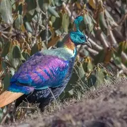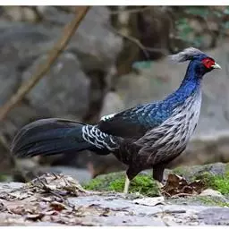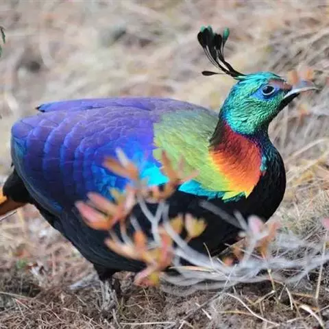 蓝马鸡是珍稀名贵的禽类,羽毛美丽,可作装饰用,头侧绯红,耳羽簇白色、突出于颈部顶上,通体蓝灰色,…