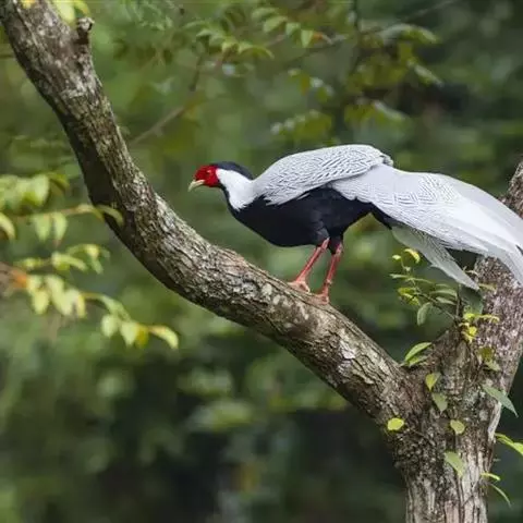 白鹇,是鸡形目雉科鹇属的一种留鸟。雄鸟上体白色并具黑色纹,下体黑色,头顶具黑色长羽冠,…