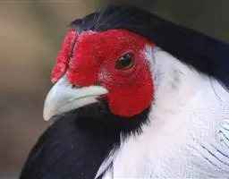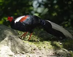 白颈长尾雉:大型鸡类,体长81厘米,体型大小和雉鸡相似。雄鸟头灰褐色,颈白色,脸鲜红色,其上后缘有…