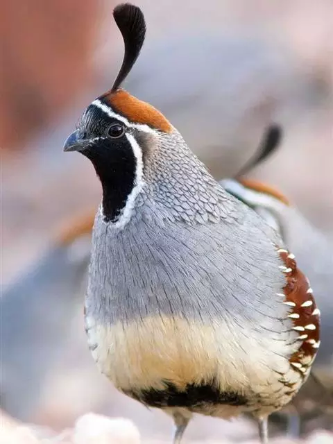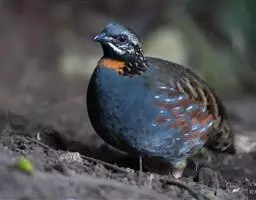 褐胸山鹧鸪:雄鸟体长22厘米,体重310克;雌鸟体长23厘米,体重220-275克。前额皮黄白色,…