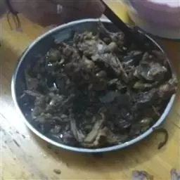 为了追求好的口感,最好剁一些肉,肥肉瘦肉各一半,剁好后,把锅内的油烧热,将咸鱼粒放下去炒,七成熟时,将剁好的肉、葱头段一块扔进锅内,翻炒几下,然后放水下去焖。水不能多,也不能少。下一些盐,要放鱼露,鱼露最入味的了。再下一些老抽上色。这时,把锅盖盖上。焖上一阵即可。
