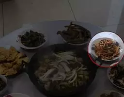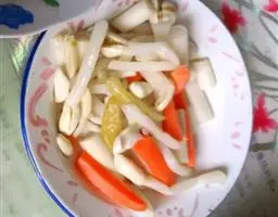 有一天晚上,这个家中的女主人在炒另一只菜的时候,她为了不让配料浪费,她把上次烧鱼时用剩的配料都放在这款菜中炒和,当时她还以为这款菜可能味不是很好吃,可能家中的男人回来后不好交待,正在她发呆之际,她的老公做生意回家了。