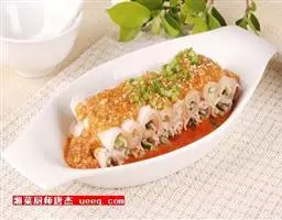 泰国鱼露4克,胡椒粉0.1克,黄酒3克,味精1克,生粉2克,麻油3克,葱、姜、蒜末各3克,香醋少许,清油60克
