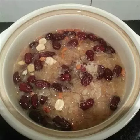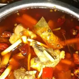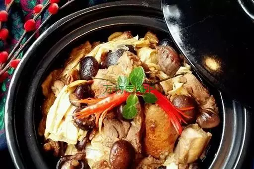 3、锅留底 入味精,用永生粉勾芡,滴醋,加麻油,即可盛入烧热的煲中。