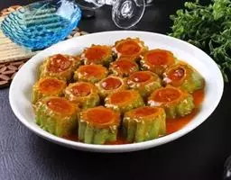 1.把茄子挖掉一半放入肉末,放入6成油温的油锅中进行油炸至炸熟即可,捞出备用。