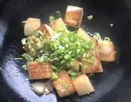 7.放入葱碎,煸炒。