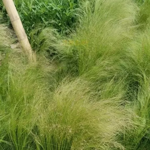 圆锥花序狭窄,几全部含藏于叶鞘内;小穗草黄或灰白色;颖尖披针形,先端细丝状,长2.5-3.5厘米,第一颖具1-3脉,第二颖具3-5脉(间脉多不明显);外稃长1-1.2厘米,背部具有排列成纵行的短毛,芒两回膝曲,光亮,边缘微粗糙,第一芒柱扭转,长4-5厘米,第二芒柱稍扭转,长约1.5厘米,芒针卷曲,长约10厘米,基盘尖锐,长2-3毫米,具淡黄色柔毛;内稃具2脉。颖果纺锤形,长6-7毫米,腹沟甚浅。花果期6-8月。