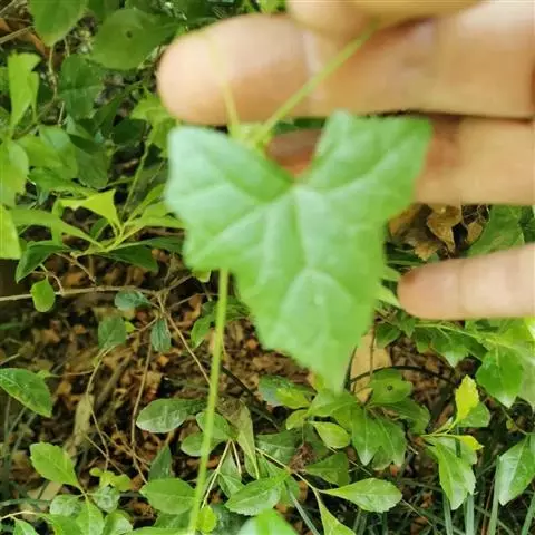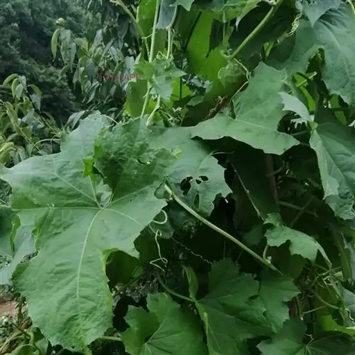 一年生攀援藤本;茎、枝粗糙,有棱沟,被微柔毛。卷须稍粗壮,被短柔毛,通常2-4歧。叶柄粗糙,长10-12厘米,具不明显的沟,近无毛;叶片三角形或近圆形,长、宽约10-20厘米,通常掌状5-7裂,裂片三角形,中间的较长,长8-12厘米,顶端急尖或渐尖,边缘有锯齿,基部深心形,弯缺深2-3厘米,宽2-2.5厘米,上面深绿色,粗糙,有疣点,下面浅绿色,有短柔毛,脉掌状,具白色的短柔毛。