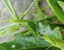 当蔓长30厘米时可插竹,插入字架,插架后,不要马上引蔓,要适当窝藤、压蔓,有雌花出现时再向上引蔓,并使蔓均匀分布。