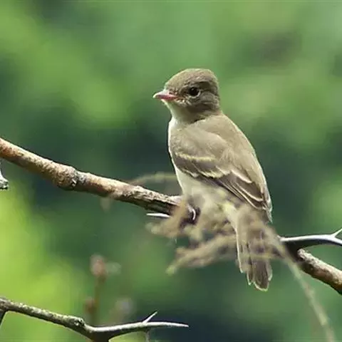 小纹霸鹟,分布于北美地区,列入《世界自然保护联盟》ver 3.1:2009年鸟类红色名录。
