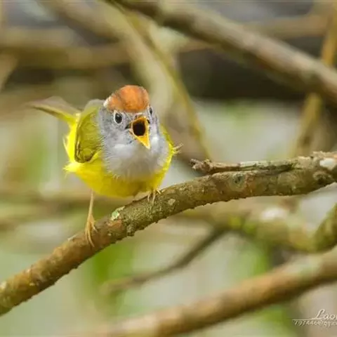 黑喉缝叶莺:体长11.5厘米,是一种小型的顶冠棕色、腹部白色的莺。尾甚长而常上翘,臀黄色,…
