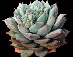 株高通常30厘米以内,茎直立,半木质化,随着植株的生长下部叶逐渐脱落在茎的顶端排列呈莲座状,肉质叶肥厚饱满,直立,匙形、长椭圆形,被白粉,在温差较大、阳光充足的环境中叶片呈红色至暗红色,非常漂亮。紫红色的花茎自叶腋抽出,小花钟状,在冬季或春季盛开。