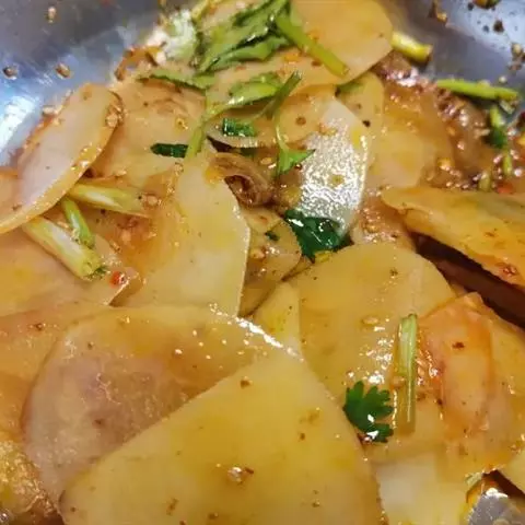 大火不停煸炒2分钟,加一点点水,盖上锅盖焖一会儿