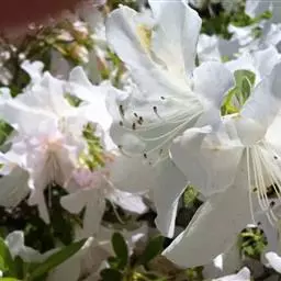 刺毛杜鹃(Rhododendron championiae Hook.):常绿灌木,高2-5米;枝褐色,被开展的腺头刚毛和短柔毛。叶厚纸质,长圆状披针形,上面深绿色,疏被短刚毛,下面苍白色,密被刚毛和短柔毛。伞形花序生枝顶叶腋,有花2-7朵;花冠白色或淡红色,狭漏斗状,长5-6厘米,稀达7.2厘米,5深裂,裂片长圆形或长圆状披针形。蒴果圆柱形,长达5.5厘米,微弯曲,具6条纵沟。花期4-5月,果期5-11月。