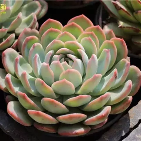 大和锦是景天科拟石莲花属的多肉植物。肉质叶排成紧密的莲座状,广卵形至散三角卵形,背面突起呈龙骨状,…