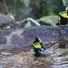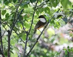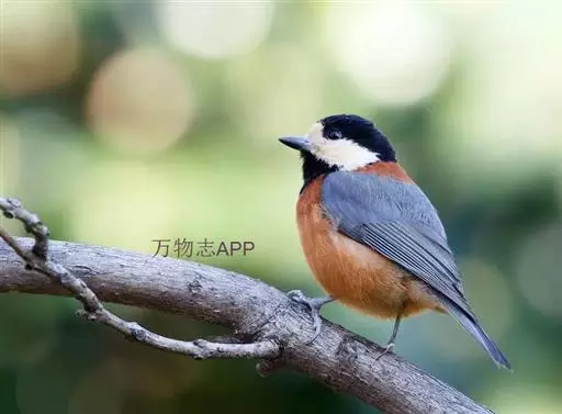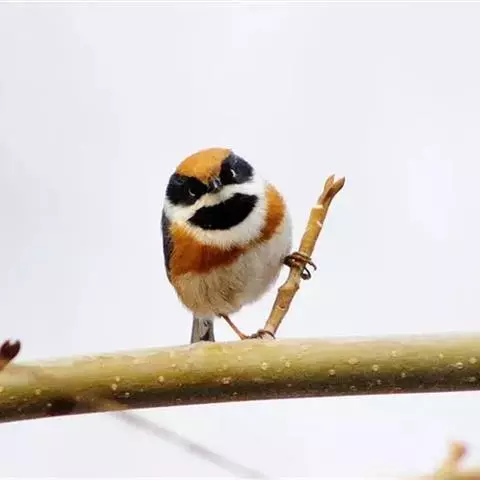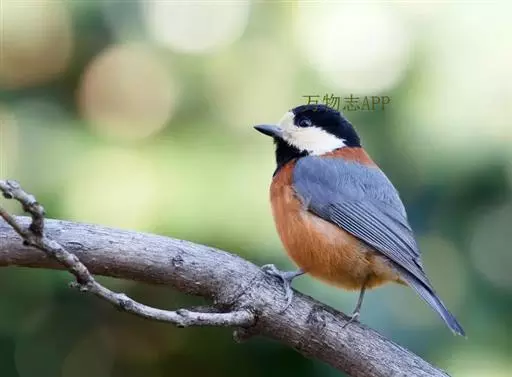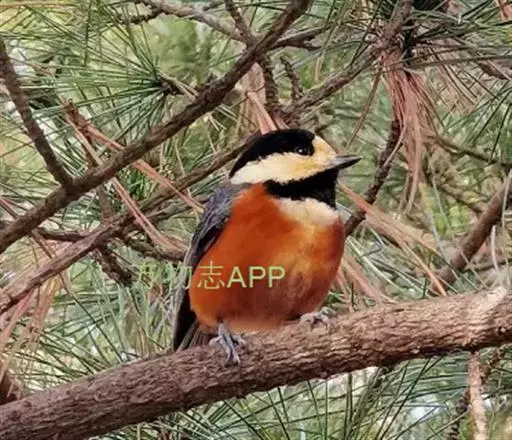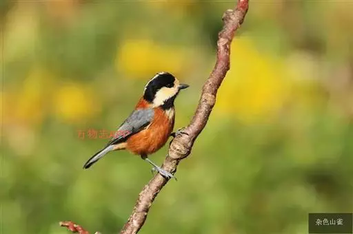 杂色山雀(学名:Sittiparus varius):体重17-18克,体长125-140毫米。雌雄羽色相似。额、眼先、耳羽至颈侧乳黄色,头顶至后颈黑色,后头中央有一白斑。上背栗色,上体余部及翼蓝灰色。颏、喉黑色,喉与上胸间有一乳黄色横斑,胸、腹及两胁栗红色,胸和腹部中央至尾下覆羽淡黄褐色。虹膜褐色,嘴黑色,脚灰色。易与其它种山雀区别。