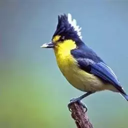 台湾黄山雀体长约13厘米。头顶至后颈黑色,有一长的黑色羽冠,羽冠末端和后颈中央白色。背苍绿色,…