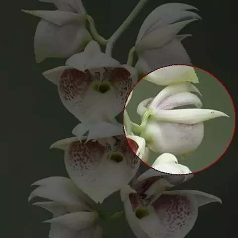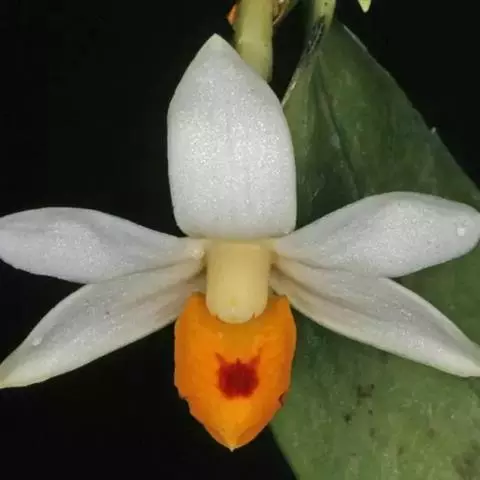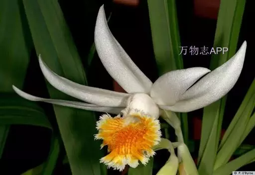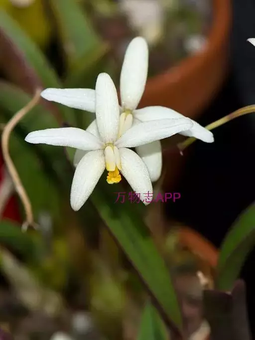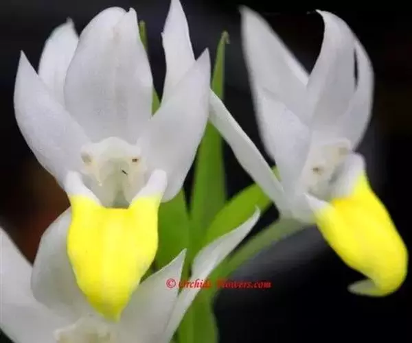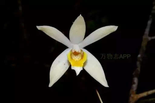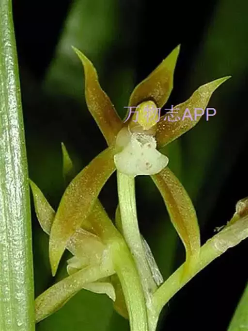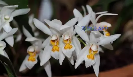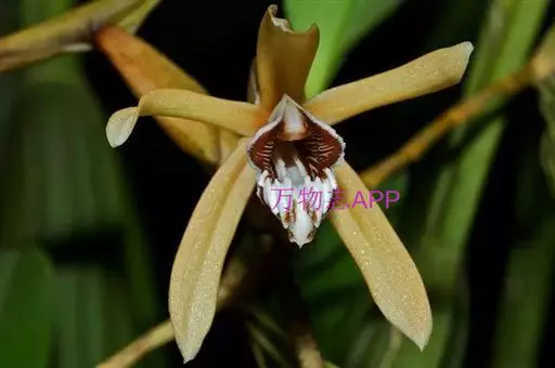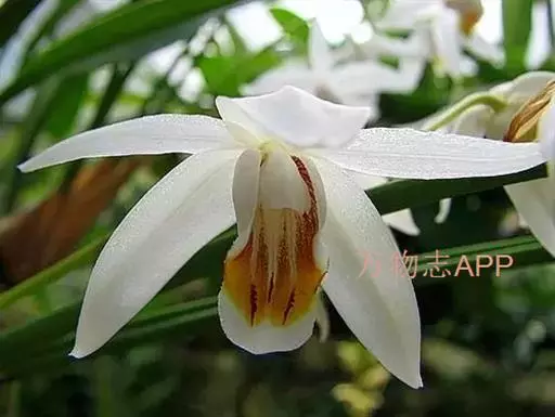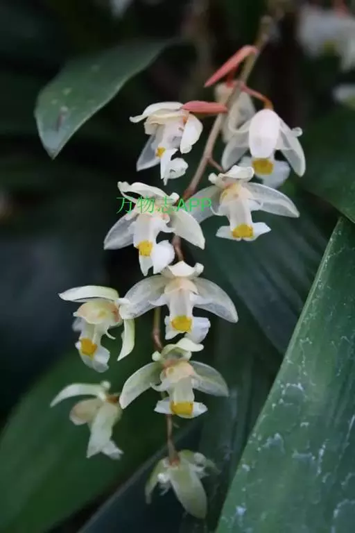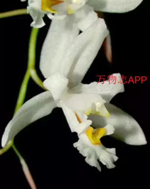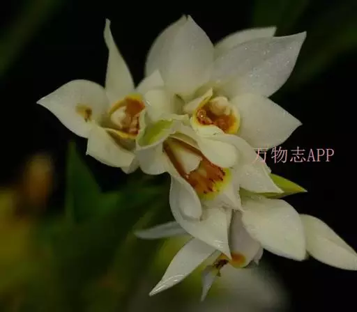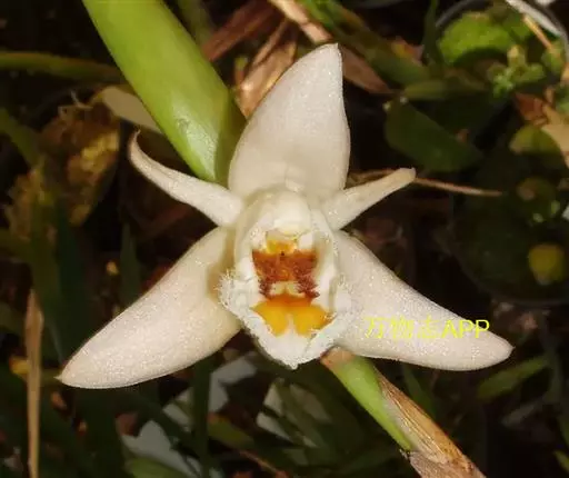 花葶连同幼嫩假鳞茎和叶从靠近老假鳞茎基部的根状茎上发出,长8-12厘米,下半部为鞘所包;总状花序长5-7厘米,具2-4朵花;花苞片卵状披针形,纸质,多少舟状,长2.5-3.5厘米,在花期不落;花梗和子房长2-2.5厘米;花白色,较大;萼片披针形或长圆状披针形,长3-4厘米,宽1-1.5厘米,先端急尖,背面多少具龙骨状突起。