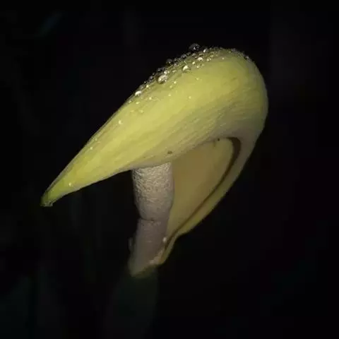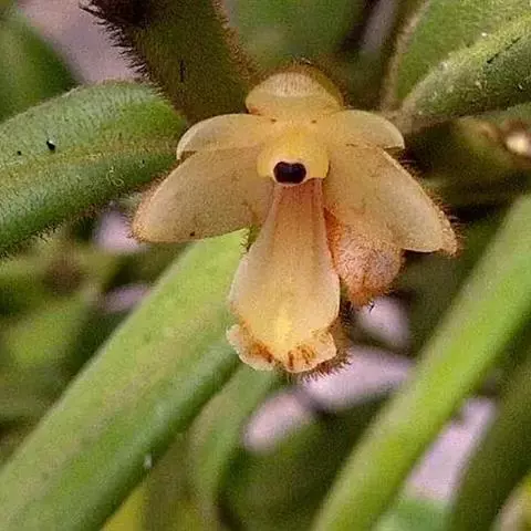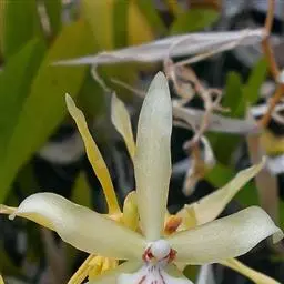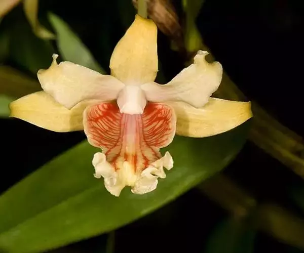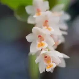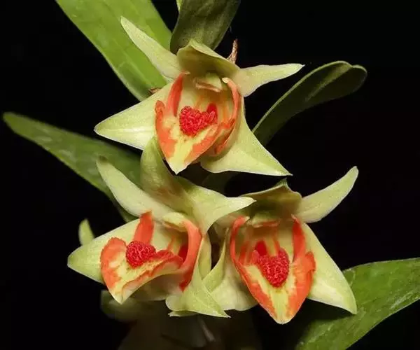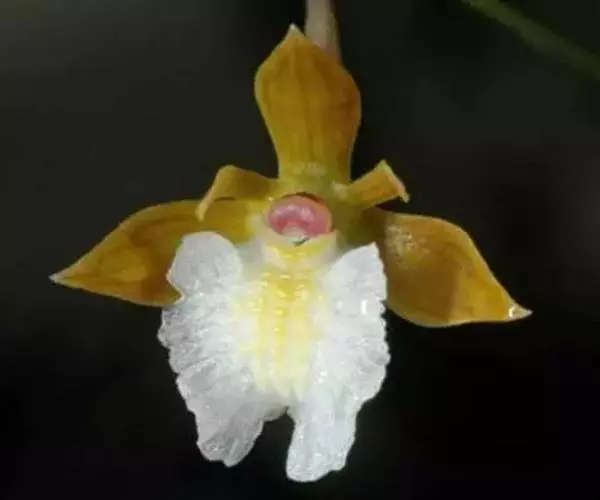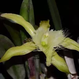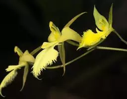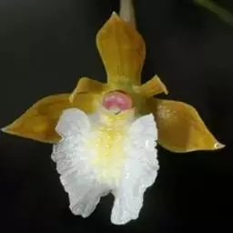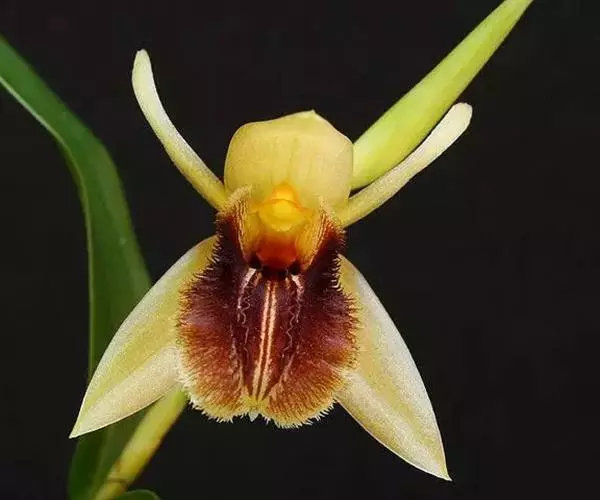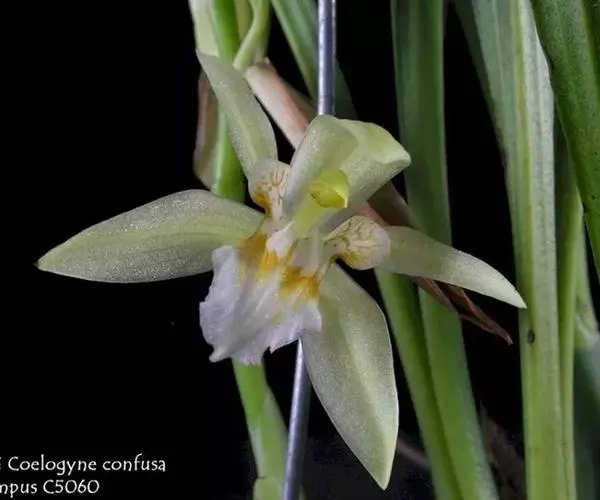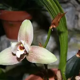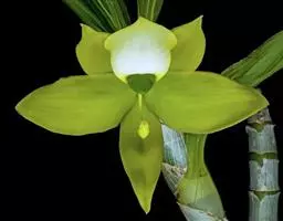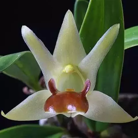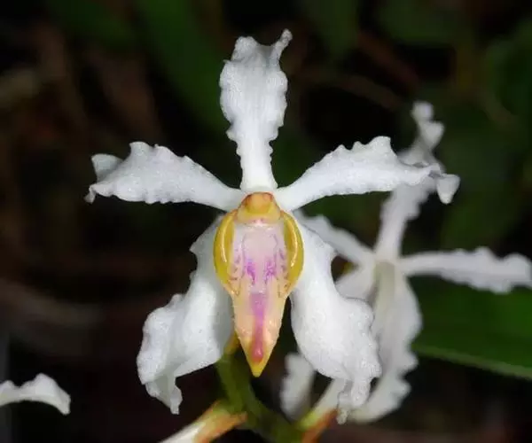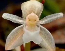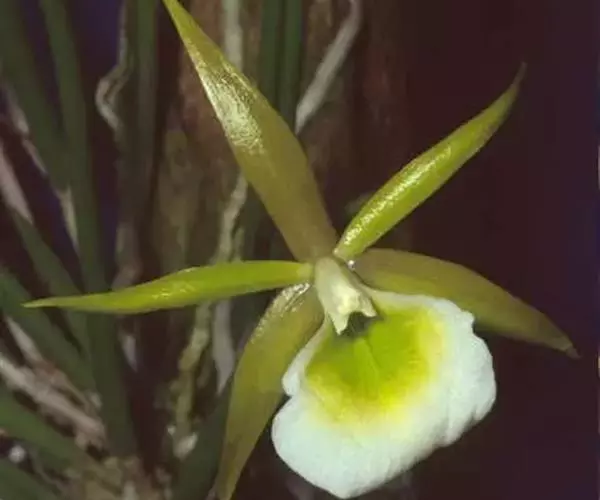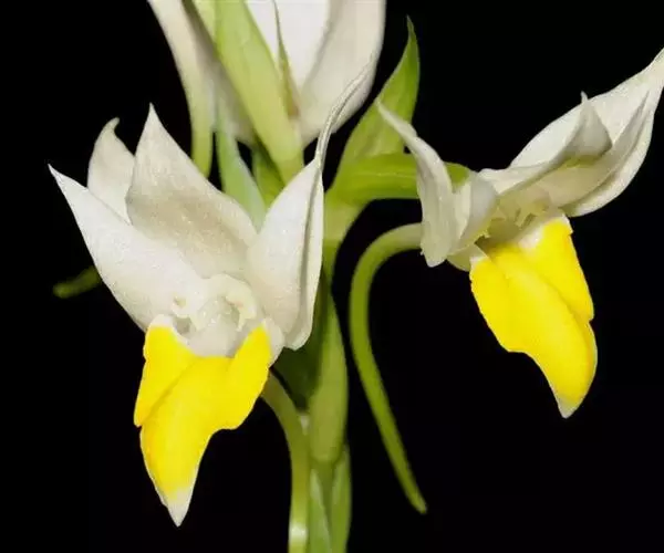 花葶连同幼嫩假鳞茎和叶从靠近老假鳞茎基部的根状茎上发出,长8-12厘米,下半部为鞘所包;总状花序长5-7厘米,具2-4朵花;花苞片卵状披针形,纸质,多少舟状,长2.5-3.5厘米,在花期不落;花梗和子房长2-2.5厘米;花白色,较大;萼片披针形或长圆状披针形,长3-4厘米,宽1-1.5厘米,先端急尖,背面多少具龙骨状突起。