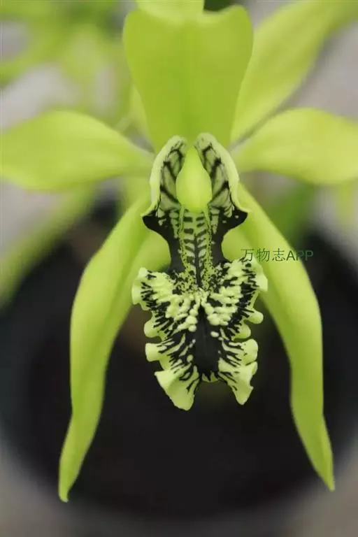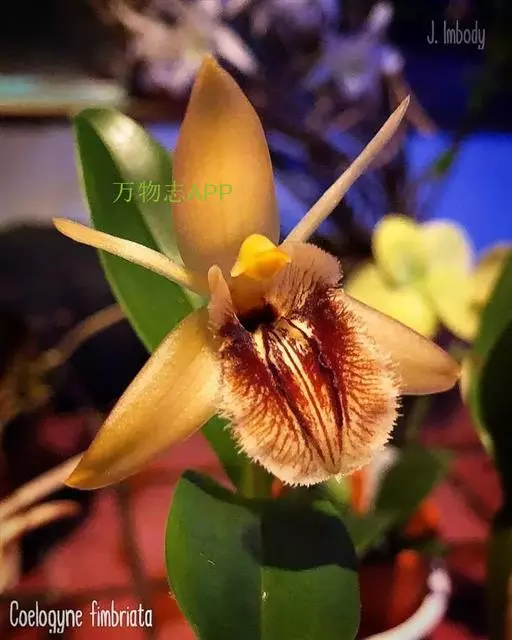 花瓣与萼片相似,宽约9-11毫米;唇瓣卵形,与花瓣近等长,凹陷,3裂;侧裂片半卵形,近全缘,直立;中裂片宽倒卵圆形或近扁圆形,长1.2-1.5厘米,先端钝或微凹,边缘近全缘,上面有2条短而宽的纵褶片;唇盘上有5条褶片完全撕裂成流苏状毛。蕊柱稍向前倾,长2-3厘米,两侧边缘具翅;翅自下向上渐宽,上部一侧宽约1.5毫米,顶端微凹或近截形。花期5月。