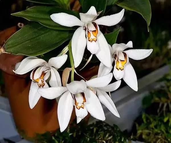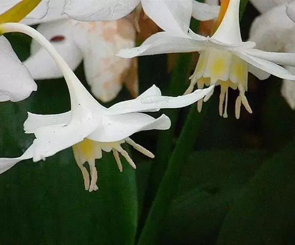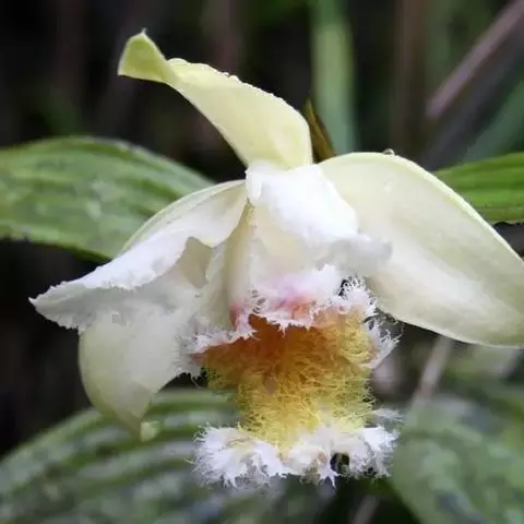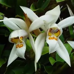 贝母兰(学名:Coelogyne cristata Lindl.)是隶属于兰科、贝母兰属的国家二级保护植物 。根状茎较坚硬,多分枝,粗4-6毫米,密被有光泽的、革质的、鳞片状鞘。假鳞茎在根状茎上相距1.5-3厘米,长圆形或卵形,顶端生2枚叶,叶线状披针形,坚纸质。花葶连同幼嫩假鳞茎和叶从靠近老假鳞茎基部的根状茎上发出;总状花序长5-7厘米,具2-4朵花;花白色,较大;萼片披针形或长圆状披针形;花瓣与萼片相似,宽约9-11毫米;唇瓣卵形,与花瓣近等长,凹陷,3裂。花期5月。