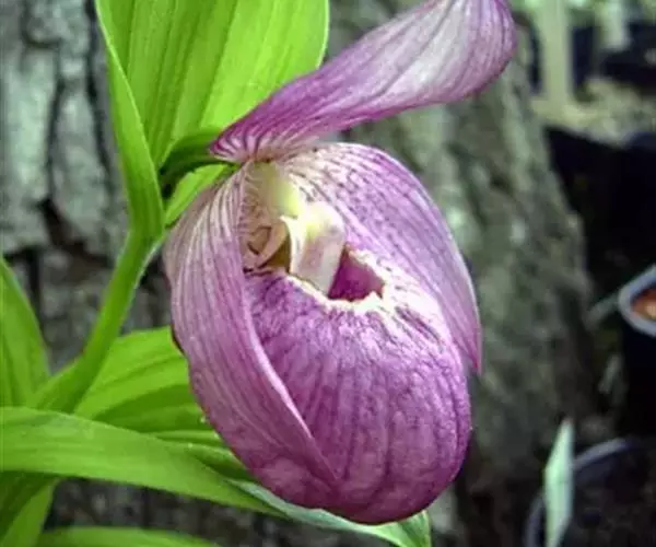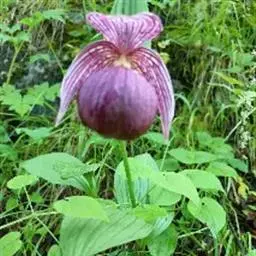 大花杓兰因其形状酷似一个口小肚大的囊袋,又名“大口袋兰”。花体呈紫红色,花朵直径5厘米至6厘米,…