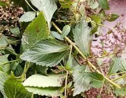 茎直立,多数,高0.6-1米,下部半木质,上部草质,四稜形,具四槽,有细条纹,黄褐色,有时带紫色,疏被微柔毛,不分枝间或有分枝,分枝短小而能育。