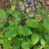 尾叶香茶菜,学名Rabdosia excisa Maxim.) Hara,唇形目唇形科植物,多年生草本。株高可达1m,根状茎粗大,横走,表面疙瘩状,密生纤堆状须根;茎近四梭形,黄褐色,具四槽,具细条纹和柔毛;叶圆形或卵固形,先端具深凹,凹缺中有一尾状长尖的顶齿。叶基宽楔形或近截形,叶面和叶背沿脉疏生短柔毛,其他处散生黄色腺点,侧脉3~4对。叶缘中部以上有大锯齿,叶柄上部具翅,微被柔毛;圆锥花序顶生或生于上部叶腋, 花序梗及花梗微被柔毛.苞片卵状披针形,小苞片线形;花萼钟形,萼齿5裂。花冠淡紫、紫或蓝色,两唇形,上唇4裂,外翻,下唇卵形;小坚果4枚,顶端圆,有毛和腺点,成熟时棕褐色。花果期7~9月。生于林缘、林萌下、路边、草地上,海拔550—1100米。