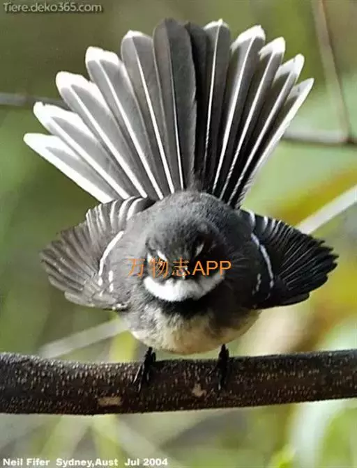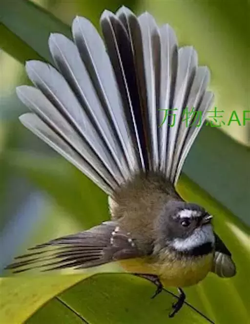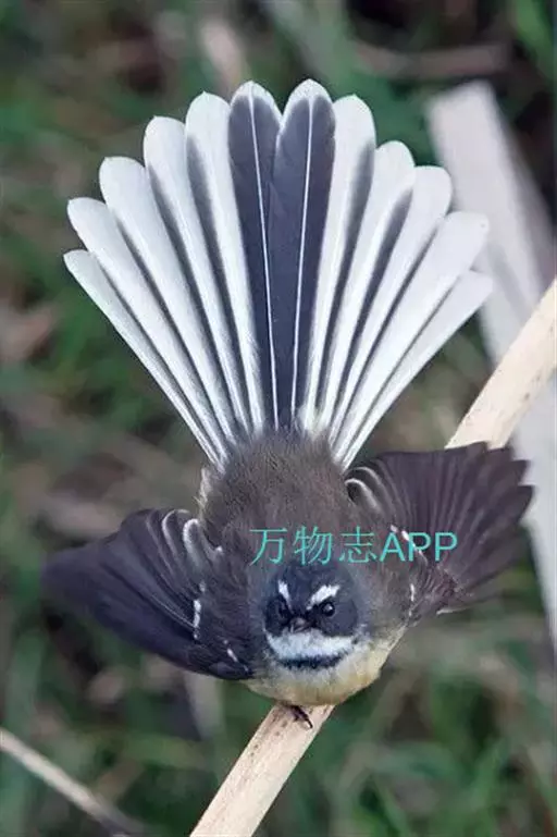 白眉扇尾鹟:体长17厘米,是一种中等体型的灰色扇尾鹟。色彩独特。宽宽的眉纹及前额白色,尾有白色宽边…
