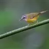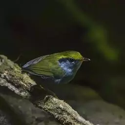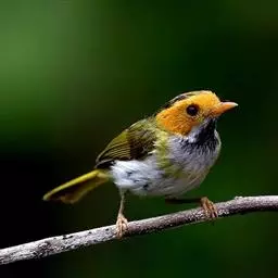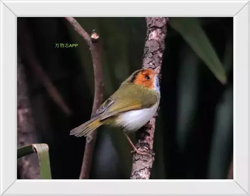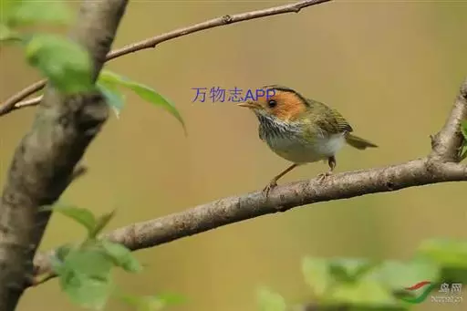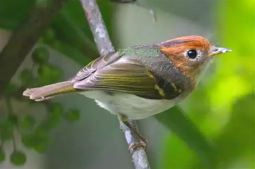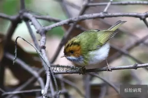 棕脸鹟莺(学名:Seicercus albogularis):体长10厘米,是一种色彩亮丽而有特色的莺鸟。头栗色,具黑色侧冠纹。上体绿,腰黄色。下体白,颏及喉杂黑色点斑,上胸沾黄。与栗头鹟莺的区别在头侧栗色,白色眼圈不显著且无翼斑。华南亚种的脸部棕红色较重,上体色较深。虹膜褐色;上嘴色暗,下嘴色浅;脚粉褐色。